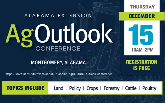 A complete list of topics and speakers, as well as registration information, is available on the Annual Alabama Agricultural Outlook Conference web page on the Alabama Extension website, www.aces.edu.