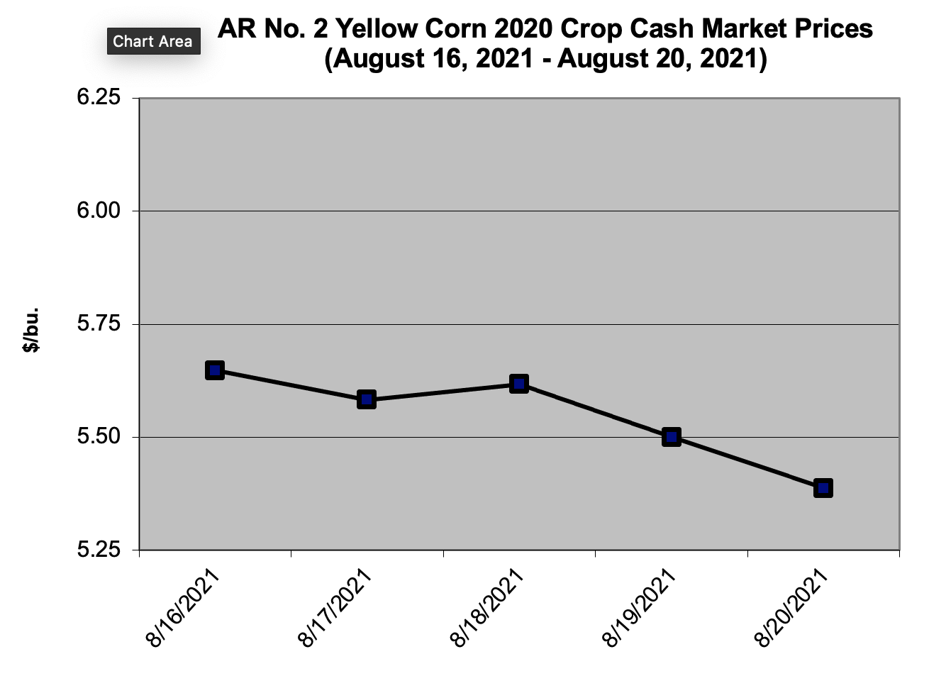 Both cash and booked corn prices fell gradually over the preceding week, with cash prices ending Aug. 20 at $5.39 a bushel, and booking prices ending at $5.55 a bushel. Robert Stark, agricultural economist emeritus for the Division of Agriculture, said a decline in cash prices is normal as harvest begins.