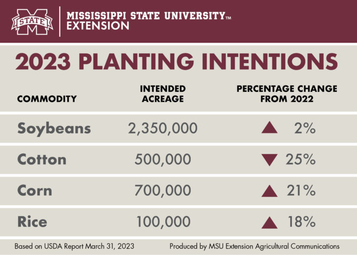 If the newest Mississippi planting forecast holds, more corn and rice will be produced in 2023 compared to recent years, while demand will drive down cotton acreage.